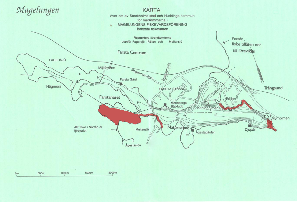 Kartan nedan är samma som på fiskekorten. Observera att rödmarkerat område ej ingår i fiskekortet.